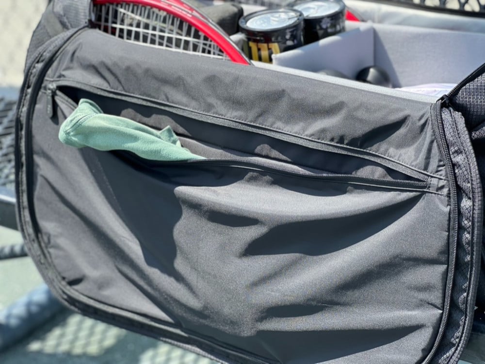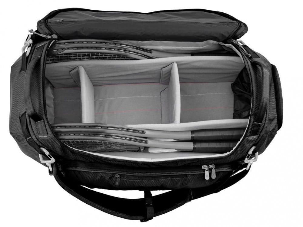 سعة المضرب - 9-10 مضارب قياسية عند ملء كيس التنس بالكامل بالمضارب.